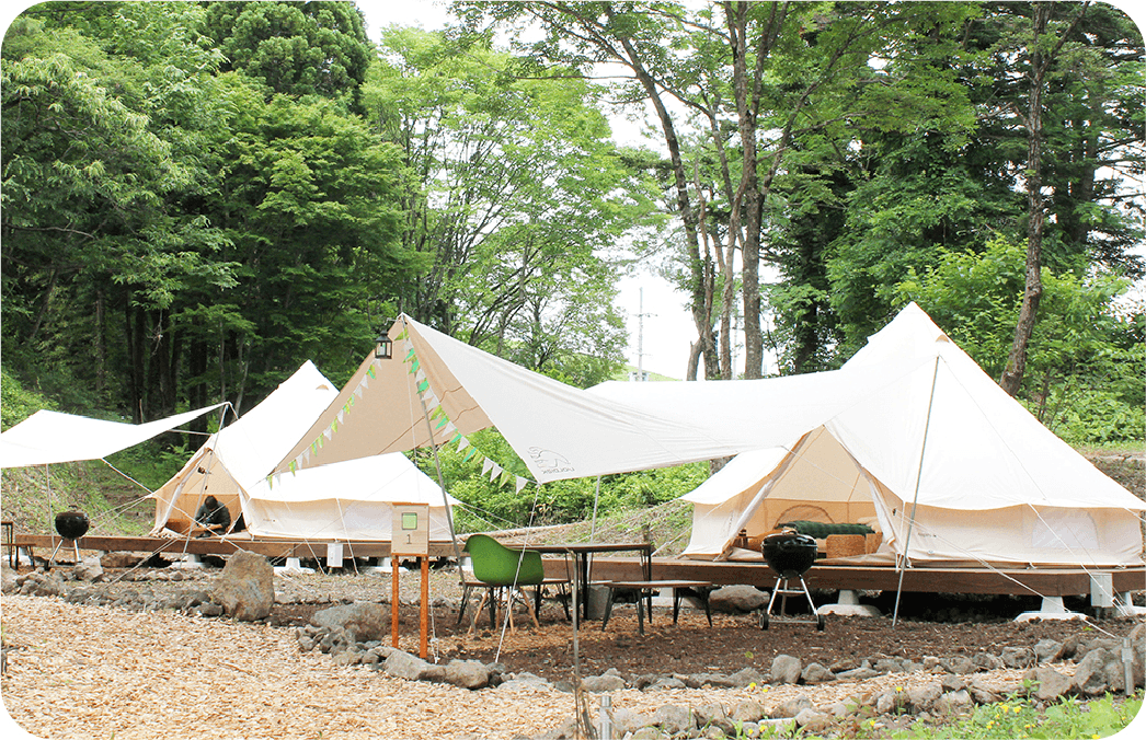 ※グランピングとは、「華やかな」の意味のglamorousにcampingを合わせた造語であり、贅沢にアウトドアを楽しむ新しいリゾートスタイルのこと