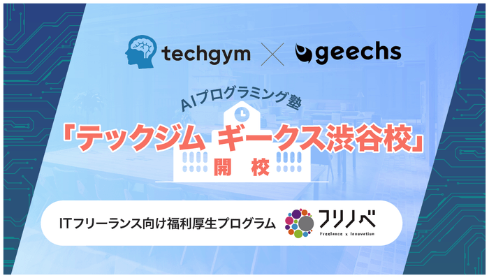 ギークス株式会社(本社:東京都渋谷区、代表取締役社長:曽根原 稔人、以下ギークス)は、ITフリーランス向けAIプログラミング塾「テックジム ギークス渋谷校」を2月6日(木)に開校することをお知らせします。本校は、ITフリーランス向けにAI技術の学習機会の提供とスキルアップ支援を目的に、AI・Pythonスクールを運営するテックジム株式会社(本社:東京都港区、代表取締役:鈴木 貴大)との提携により実現したものです。