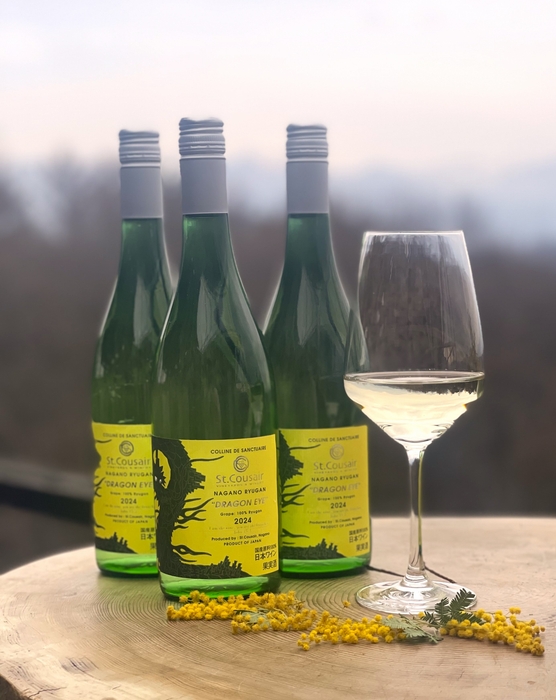 「長野竜眼」とは、サンクゼールでも屈指の人気を誇るワインです。サンクゼール・ワイナリー(長野県飯綱町)が醸造する「長野竜眼」は、長野県固有のぶどう品種“竜眼”から造る、ほんのりとした甘口の白ワイン。“竜眼”の名前からイメージした勇ましい竜のラベルもお馴染みで、毎年、夏前にはその年のヴィンテージが売り切れてしまうほどの大人気商品です。今年の「長野竜眼」の生産本数は約12,000本と、昨年よりも多くご用意しております。ぜひお近くの店舗やオンラインショップでチェックしてみてくださいね。