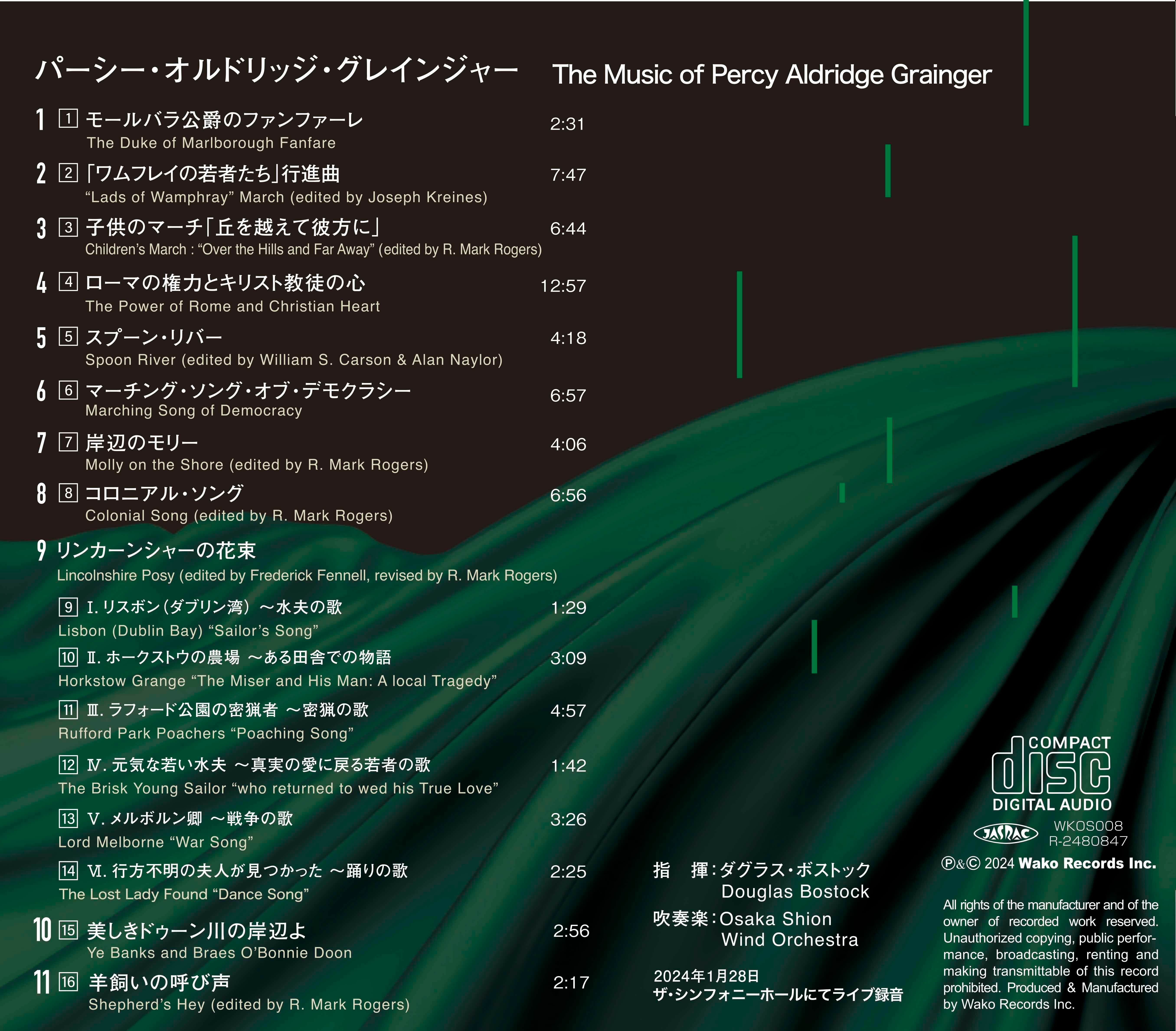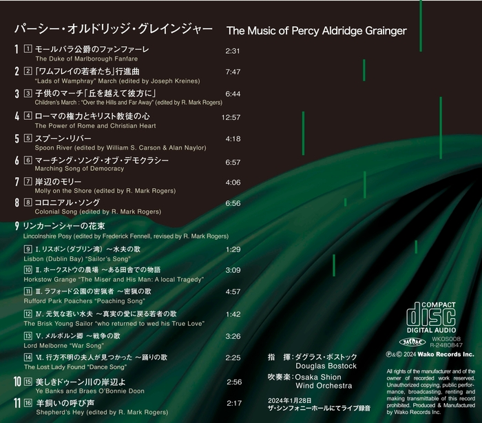 「リンカーンシャーの花束」を始め、パーシー・オルドリッジ・グレインジャー作品集を収録しております。