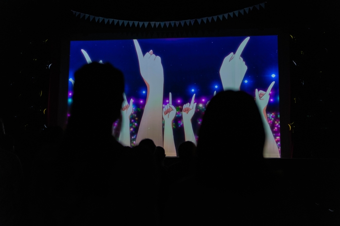 フェスの法被衣装を着た9人がらんらんホールのステージで熱唱! こちらのライブ、なんとその日ごとにセットリストが異なるとか。いつの間に撮られていたのか、今日のフェスの写真(実際に今日見かけた風景や、参加している助っ人さん達が写っている、本当に撮れたてホヤホヤの写真!)が映し出される場面も。さらに今回のテーマソングとして制作された「SUKI for you, DREAM for you!」も流れ出し、助っ人たちがペンライトや拳を掲げ、鳴りやまない拍手の中、Aqoursぬまづフェスの全行程を終えました。