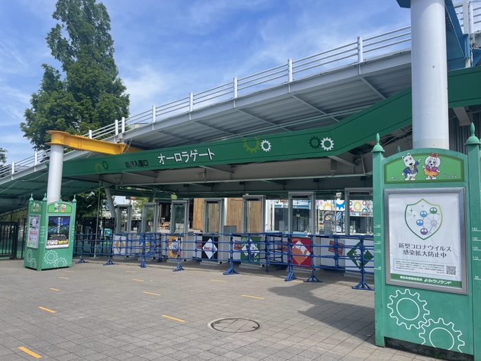 正面のスカイゲートの横にある、オーロラゲートが入場口。フェスのメイン会場「らんらんホール」はよみうりランドの最奥にあるので、ここから10分ほど徒歩で向かいます。