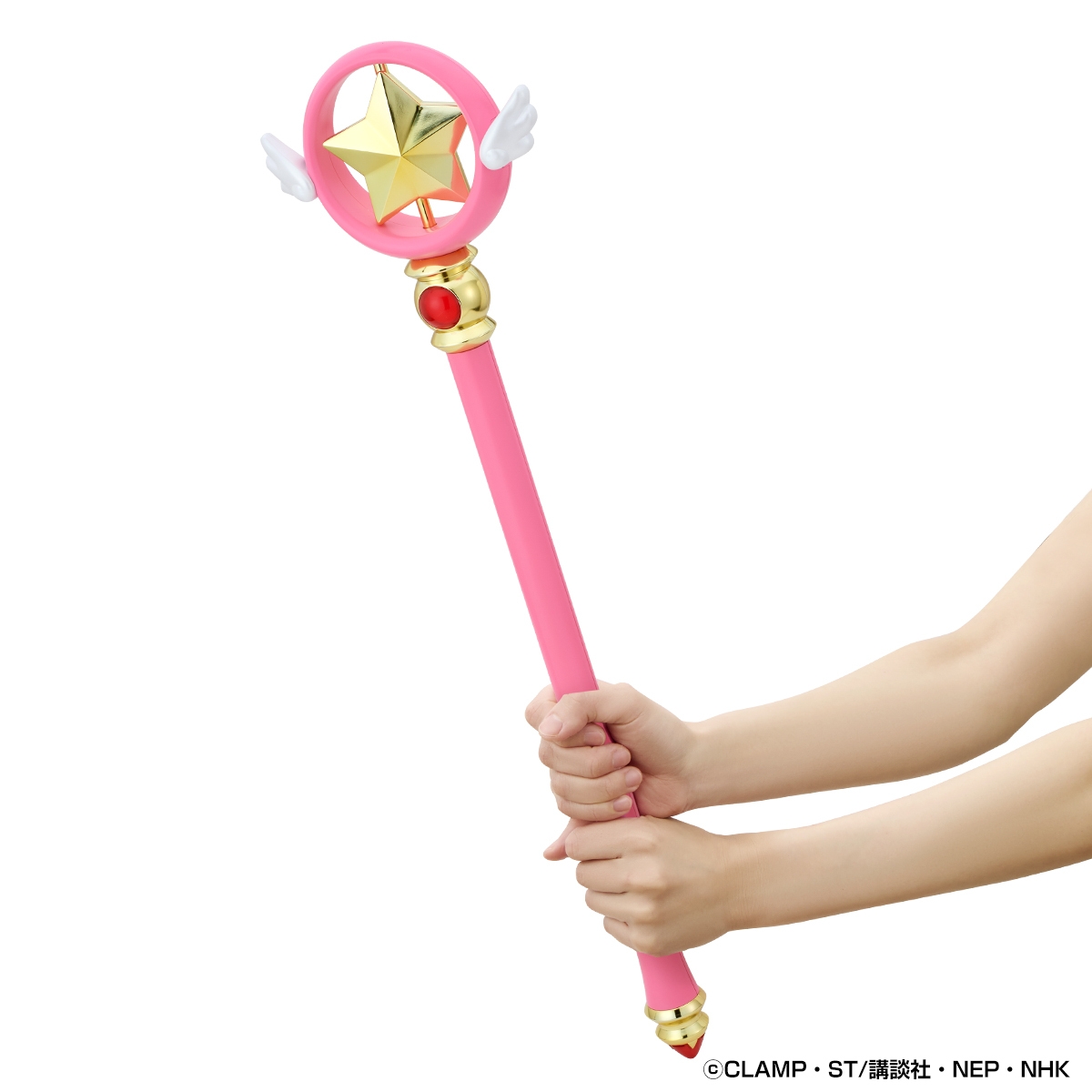 1998年に放送されたアニメ「カードキャプターさくら」より、主人公さくらちゃんが用いるアイテムである『星の杖』を、音を搭載して再現した玩具仕様で商品化いたします。