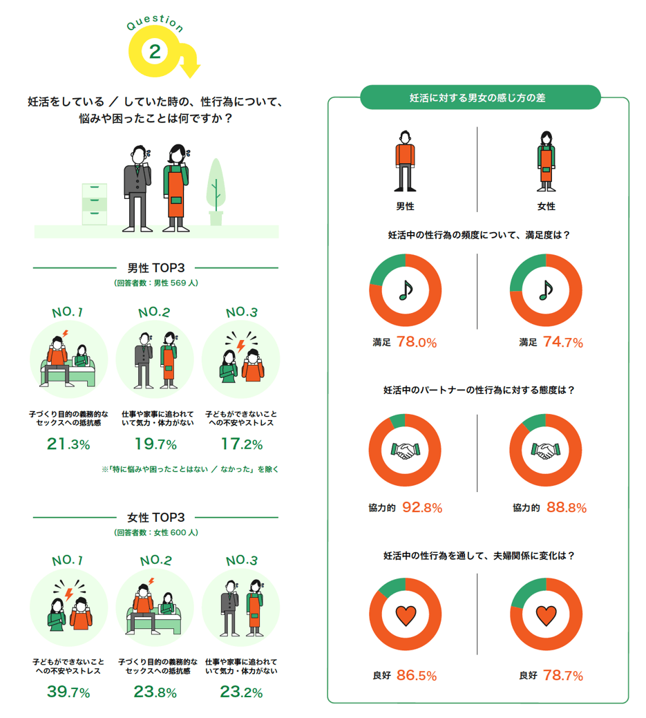 「妊活中の性行為に対する悩みや困ったこと」TOP3!妊活中の夫婦はパートナーへの不満が少ない?