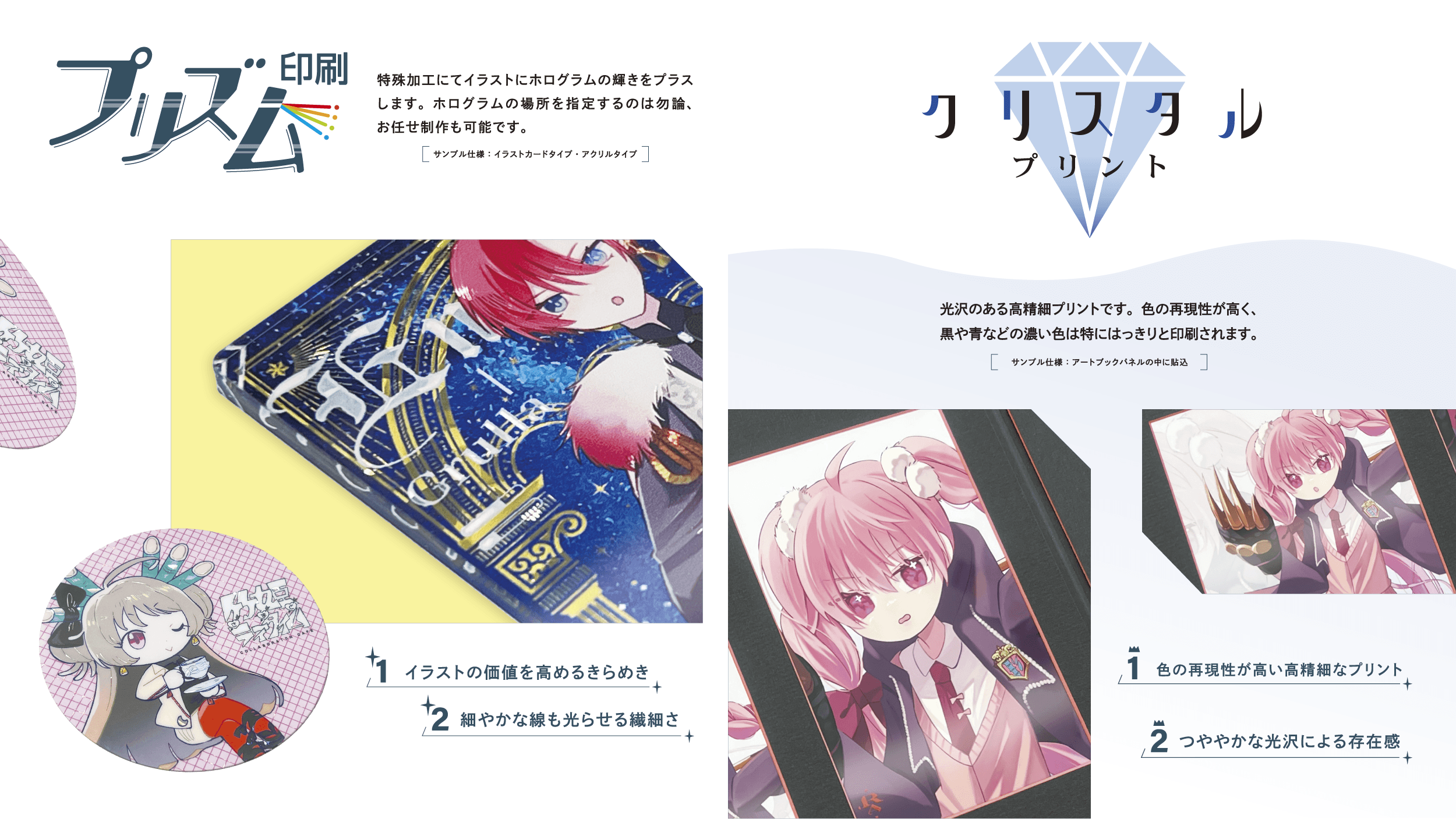また、本展示会が初出品となる「プリズム印刷」と、写真業界で使われる美しい印刷「クリスタルプリント」も展示いたします。