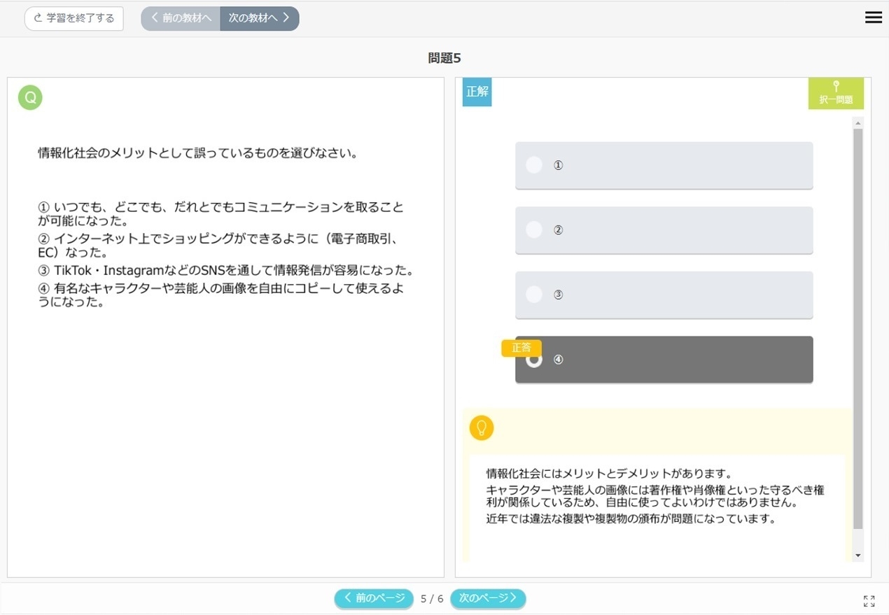 (2)単元別映像授業(情報I)は、10分から15分程度の動画ですので理解できるまで繰り返し視聴することができます。※テキストはございません。