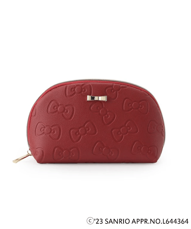 合皮素材(フェイクレザー)のアイテムには、リボンモチーフのエンボス加工が施されており、表面の立体感がアクセントになっています。