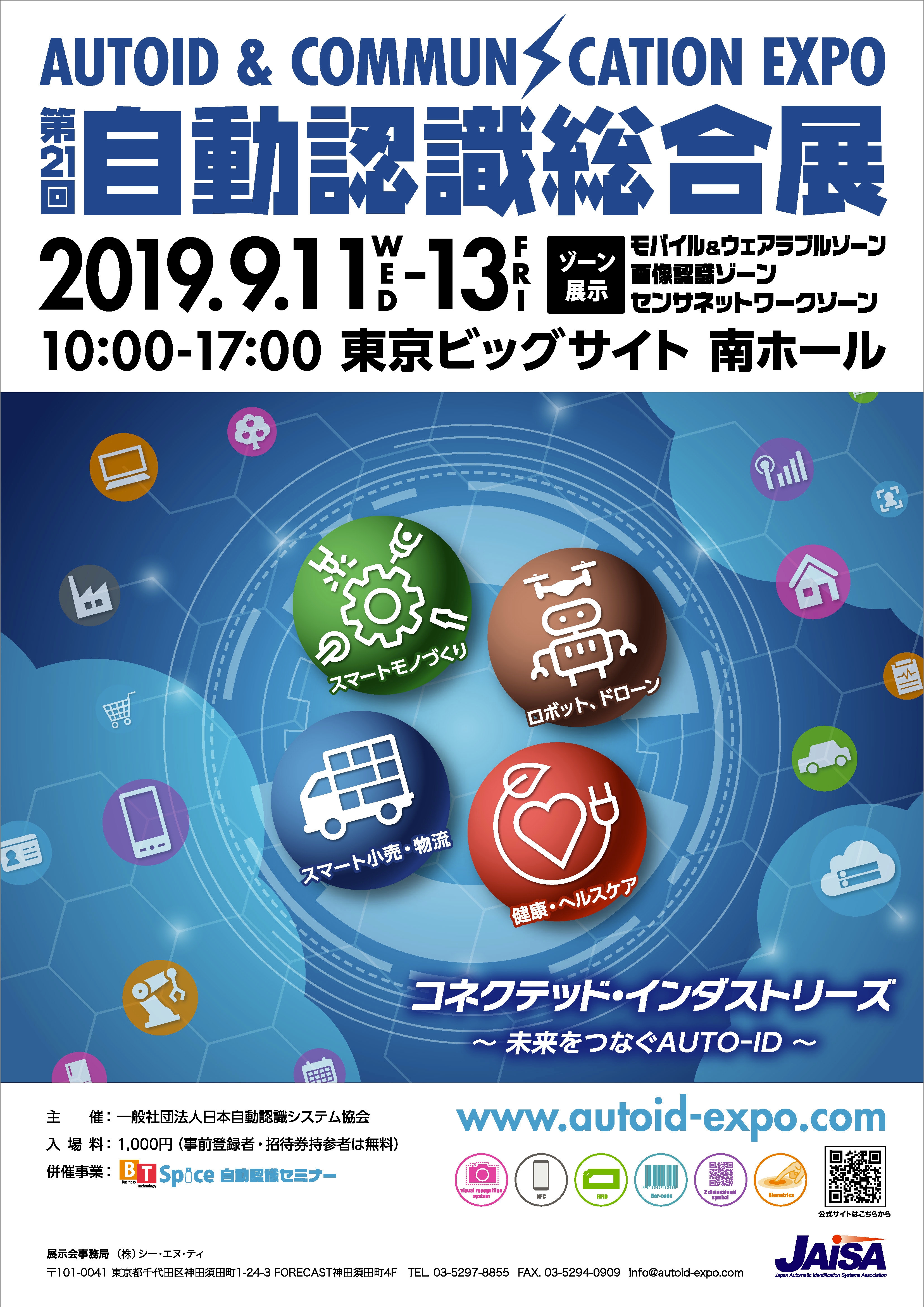 「第21回自動認識総合展 AUTOID & COMMUNICATION EXPO 2019」を 9月11日より東京ビッグサイトにて開催 98社・団体が出展、コネクテッド・インダストリーズ ~未来をつなぐAUTO-ID~