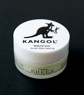 2018年にKANGOLブランド80周年を迎えるにあたり 原宿ヘアサロンBREEN Tokyoとのコラボ商品を先行販売 帽子を被る時用のワックス ハサミを持ったKANGOL限定ロゴ使用