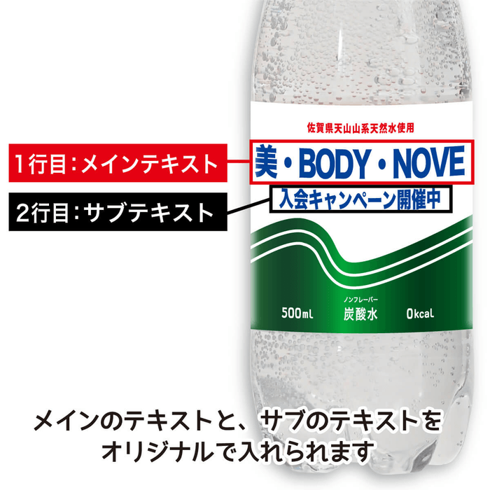そんな方でもお手軽に注文できるのが【セミオーダー】デザインです。注文フォームにメインテキスト・サブテキストを入力すれば簡単にオリジナルラベルの炭酸水を作ることができます。