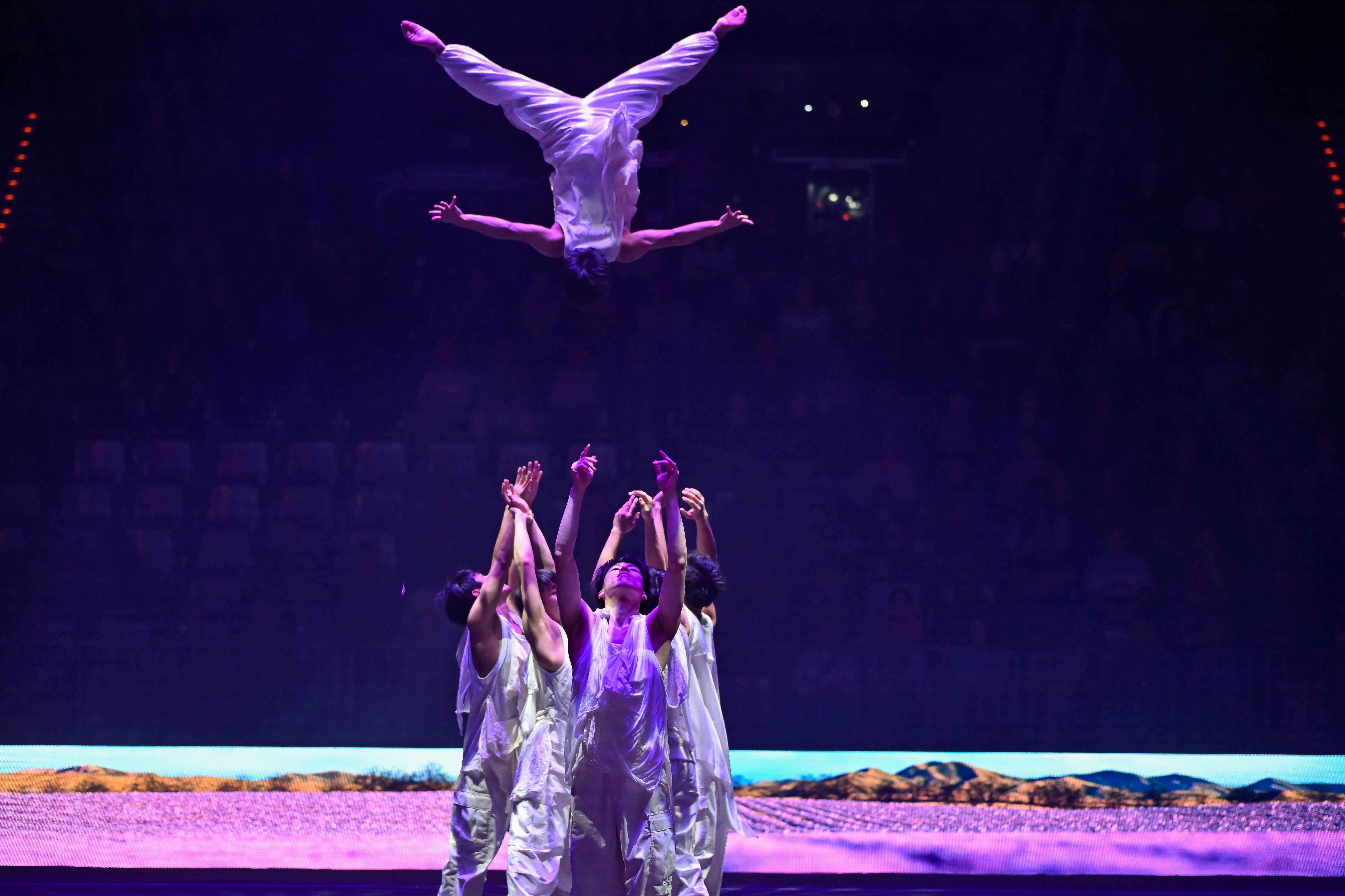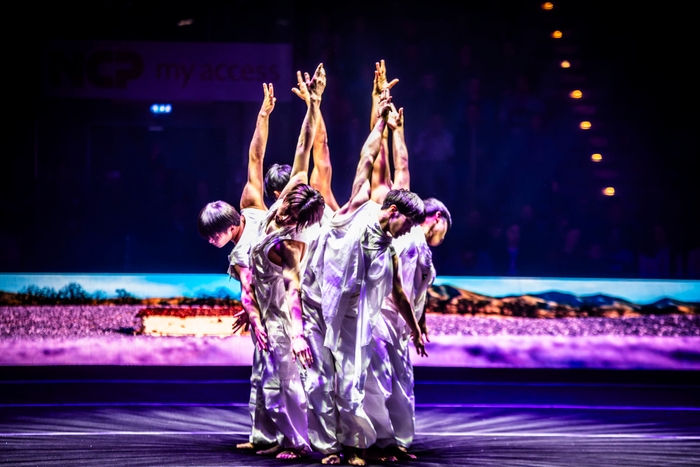 ショーは「Firework der Turnkunst」で、30年以上の歴史があり、ヨーロッパで最も成功した体操ショーと言われています。今回は「Arena-Show『GAIA』」と銘打って開催されました。きっかけは、東京の男子新体操プロ集団「BLUE TOKYO」から菅監督への出演打診でした。団体演技の映像審査をパスして、出演が決まりました。