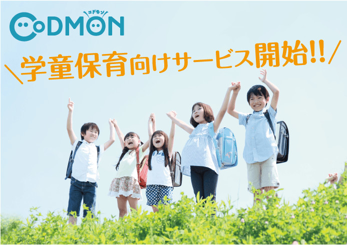 保育園・幼稚園・学童・スクール・小学校などのこども施設で働く先生の毎日をサポートするICTシステム「CoDMON(以下コドモン)」を提供する株式会社コドモン(本社:東京都港区、代表取締役社長:小池義則)は、2019年8月より、学童 保育事業者に向けた各種機能を順次提供することをお知らせします。