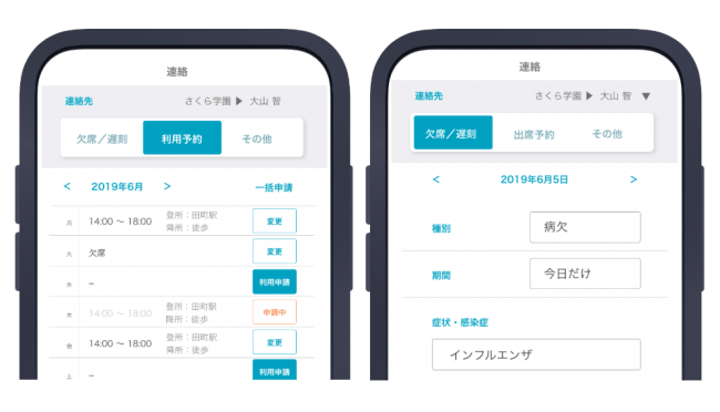 ・症状や病名→病欠/都合欠、病欠の場合は病状や感染症などの報告