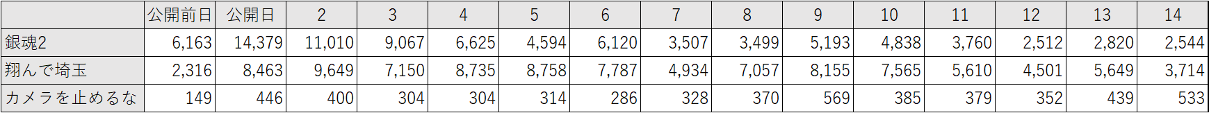 カメラを止めるな:17,964件、銀魂2:116,115件、
