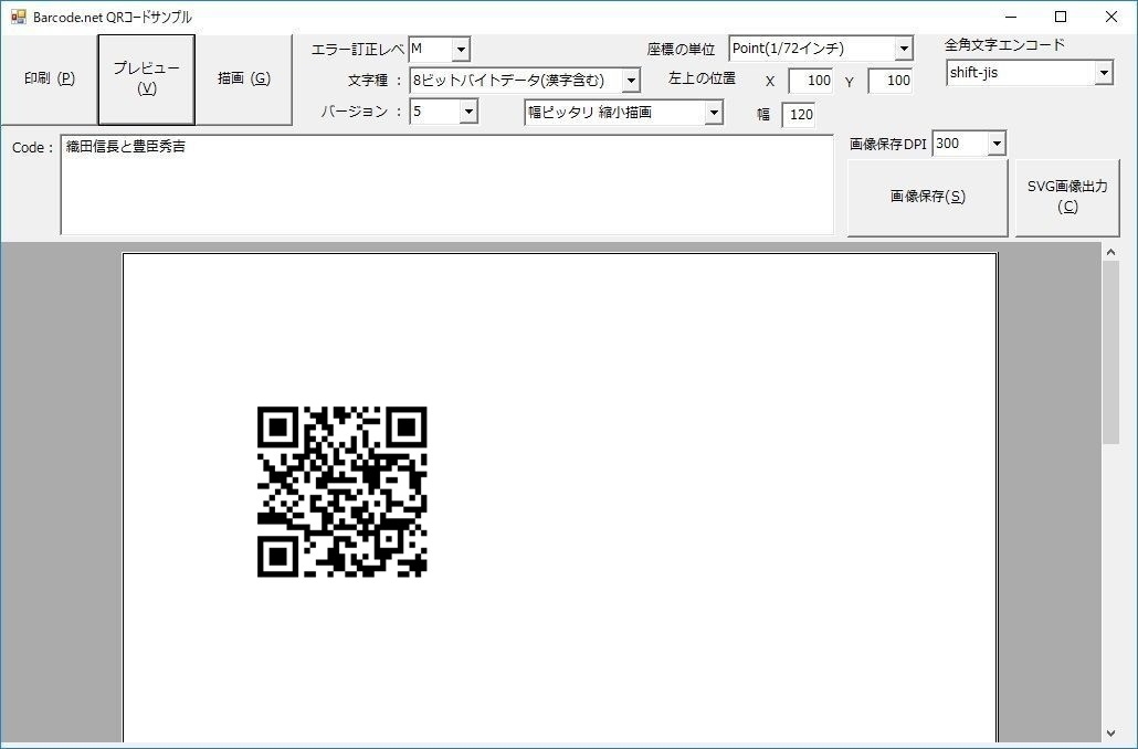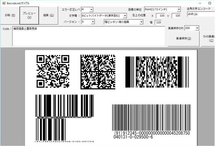 もちろん、プロパティでエンコード形式を指定していただければSHIFT_JISでのエンコードQRの出力も行えます。また、DataMatrixやPDF417といった、QRコード以外の二次元バーコードは、これまで通りエンコードのデフォルトは、UTF8です。