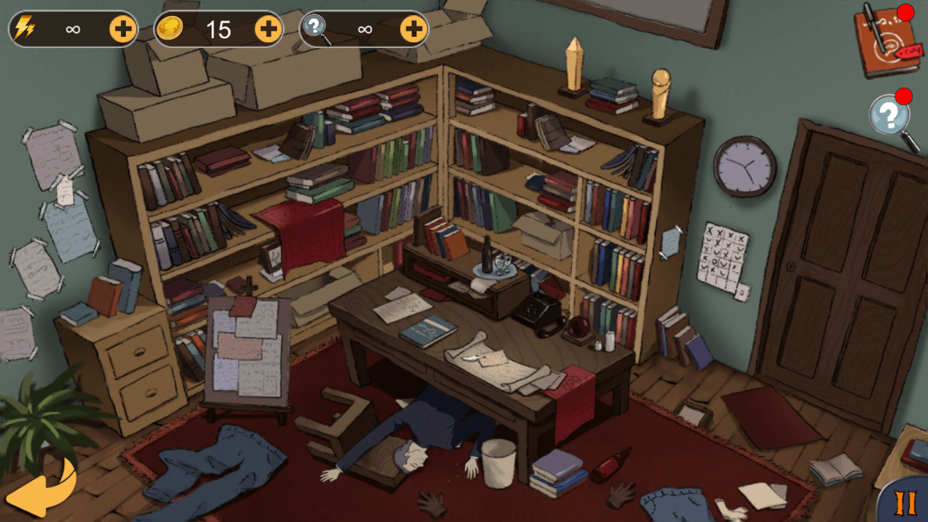 事件現場を徹底的に調べて、物証(証拠品)と手掛りを探せ。見つからない時は「ヒント」があるので安心、全ての証拠を見つけるまで頑張って探してね!