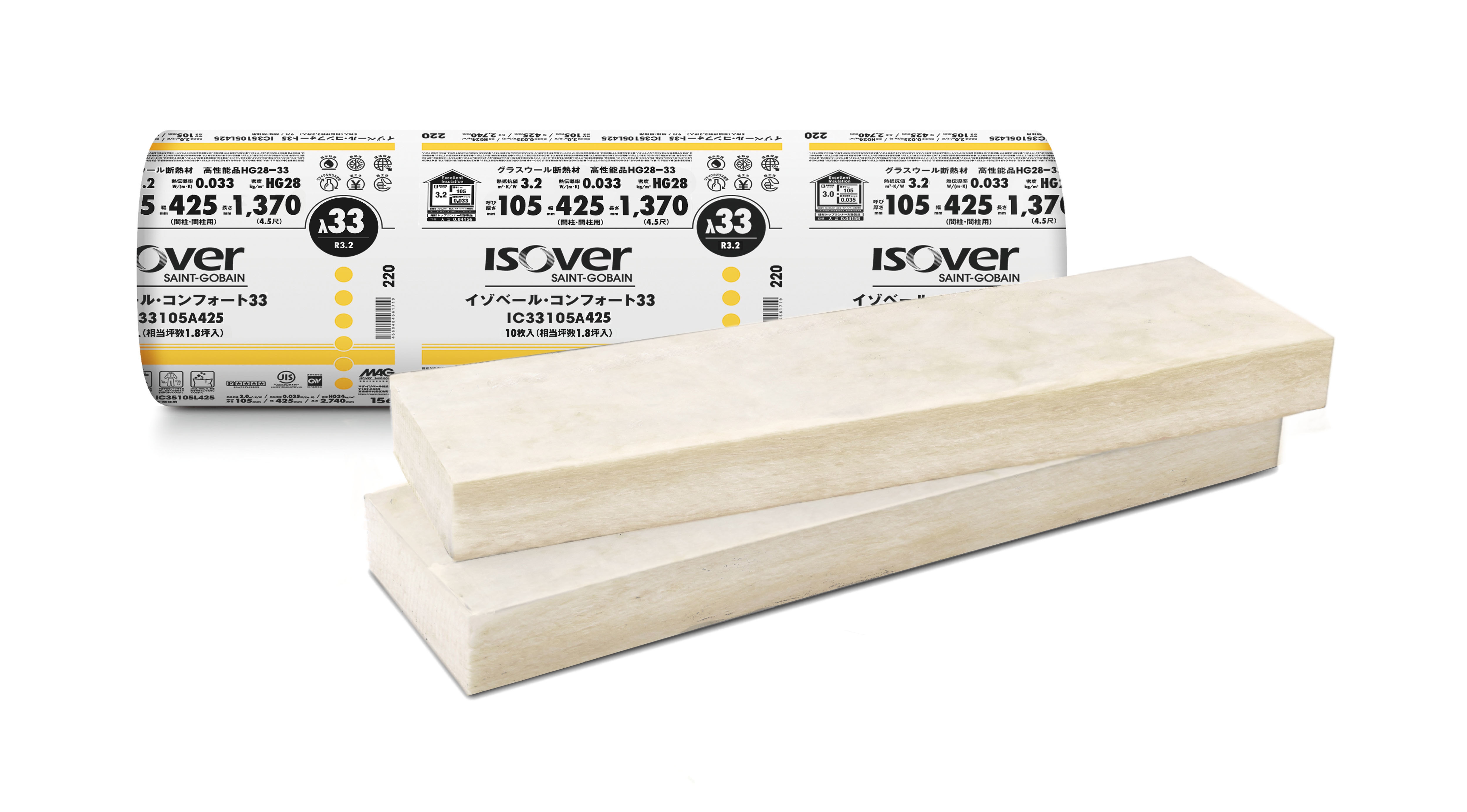 特徴 :グラスウールでトップクラスの熱伝導率0.033W/(m・K)を実現