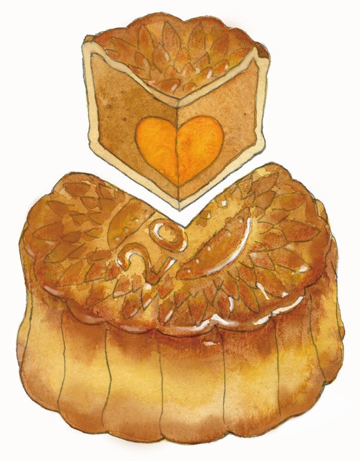 「中秋月餅」は、あんの中に満月に見立てた卵の黄味が入っていることが特長で、「蛋黄月餅」の蛋黄とは、アヒルの卵の塩漬けのことです。