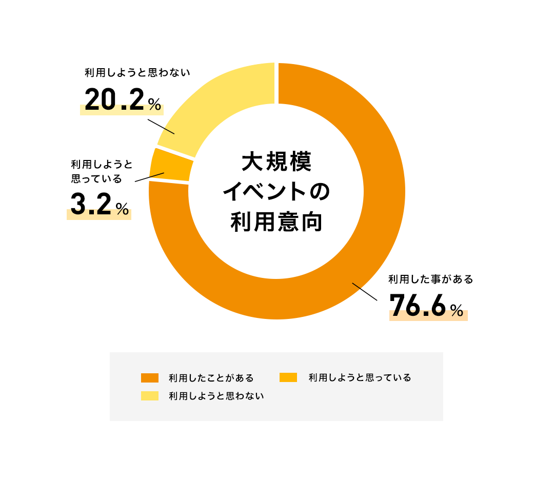 調査の結果、大規模イベントの利用意向がある学生は、全体の約80%となりました。