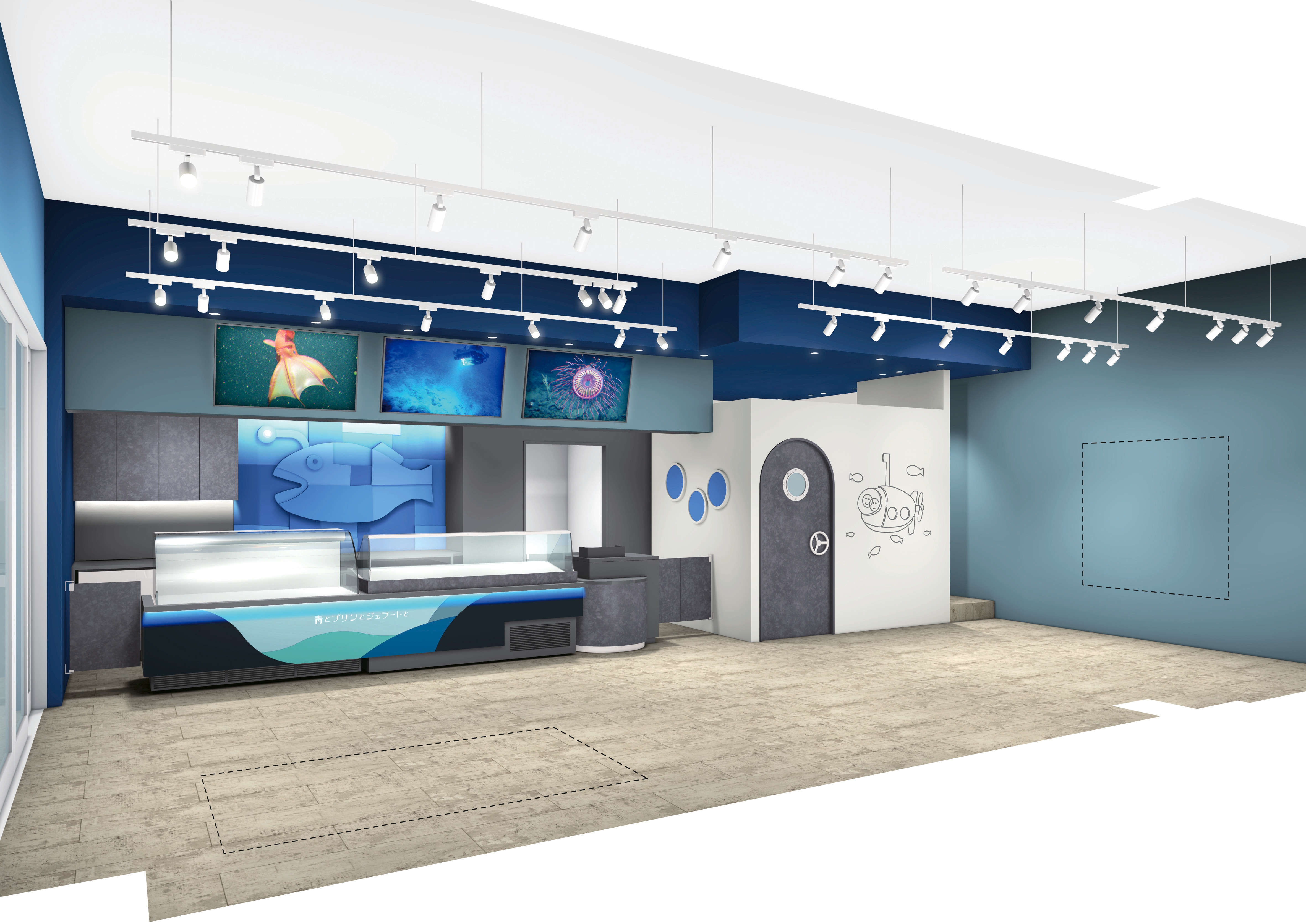 沼津港は日本一深い湾“駿河湾”に面し、そんな深海をテーマに、地元沼津を発信するプリン専門店「沼津深海プリン工房」がOPENしました。その後、多くの県外のお客様も訪れる店舗になり、1日に2,500個以上プリンが売れる人気店になりました。そして、今回は青と深海をテーマにした日本初のブルーミュージアムというコンセプトでのプリンとジェラートの専門店を2号店「沼津深海プリン工房 青とプリンとジェラートと」を同じく沼津港にOPENいたします。提供する商品は当店の看板商品でもある深海プリンがより深くなって表現された深深海プリンと、当店の人気プリンがジェラートになって味わえる深海ジェラートも提供いたします。