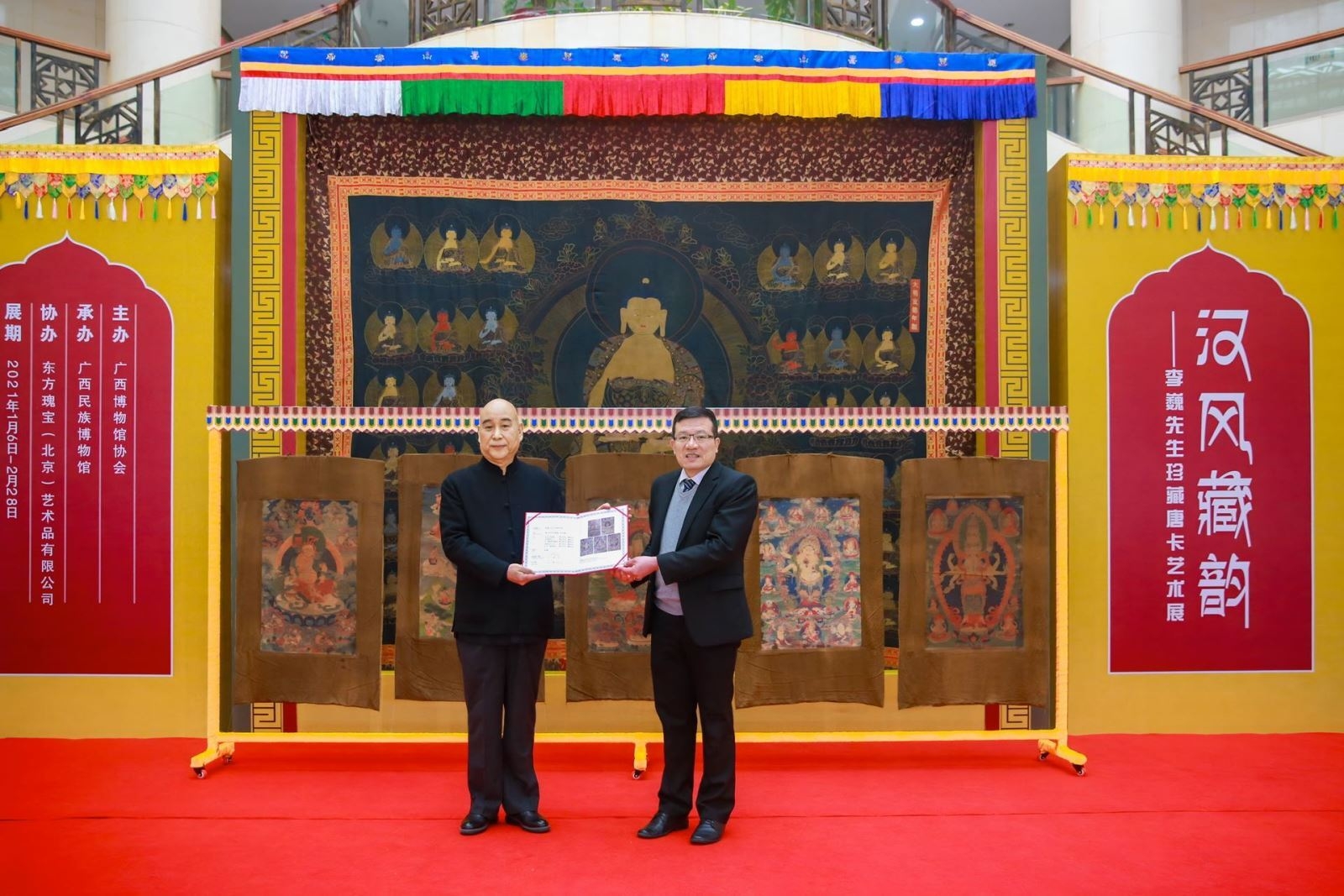 2024年の秋、日本の角川武蔵野ミュージアムにおいて、「刺繍タンカ芸術展~中国無形文化遺産の美~」と銘打たれた華々しい展覧会の幕が切って落とされた。李巍氏が提供した百点にも及ぶ宝物は、中国とチベットの交流を示す壮麗な詩史であると言ってよい。当時の朝廷における最高峰の域に達した工芸品の数々は、国内外を問わず、芸術を愛する者や専門家たちの視線を釘付けにし、にわかにして大きな話題となった。