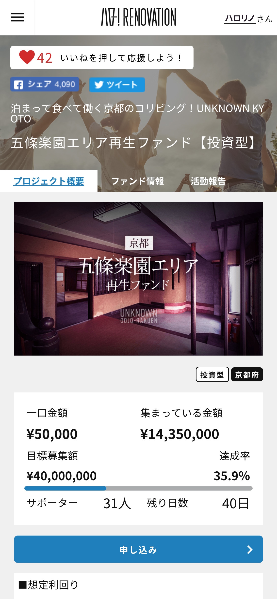 既にまちづくり参加型クラウドファンディング「ハロー!RENOVATION」をローンチし、全国初の小規模不動産特定共同事業者として、4本の投資型クラウドファンディングの募集を完了しています。