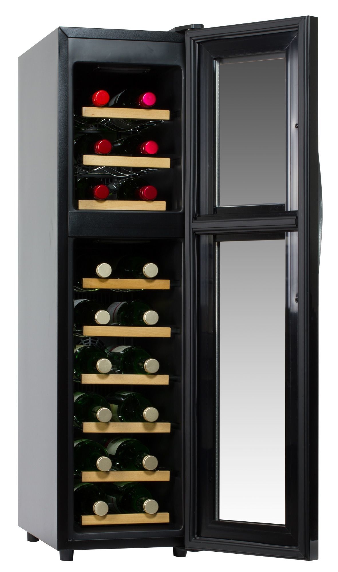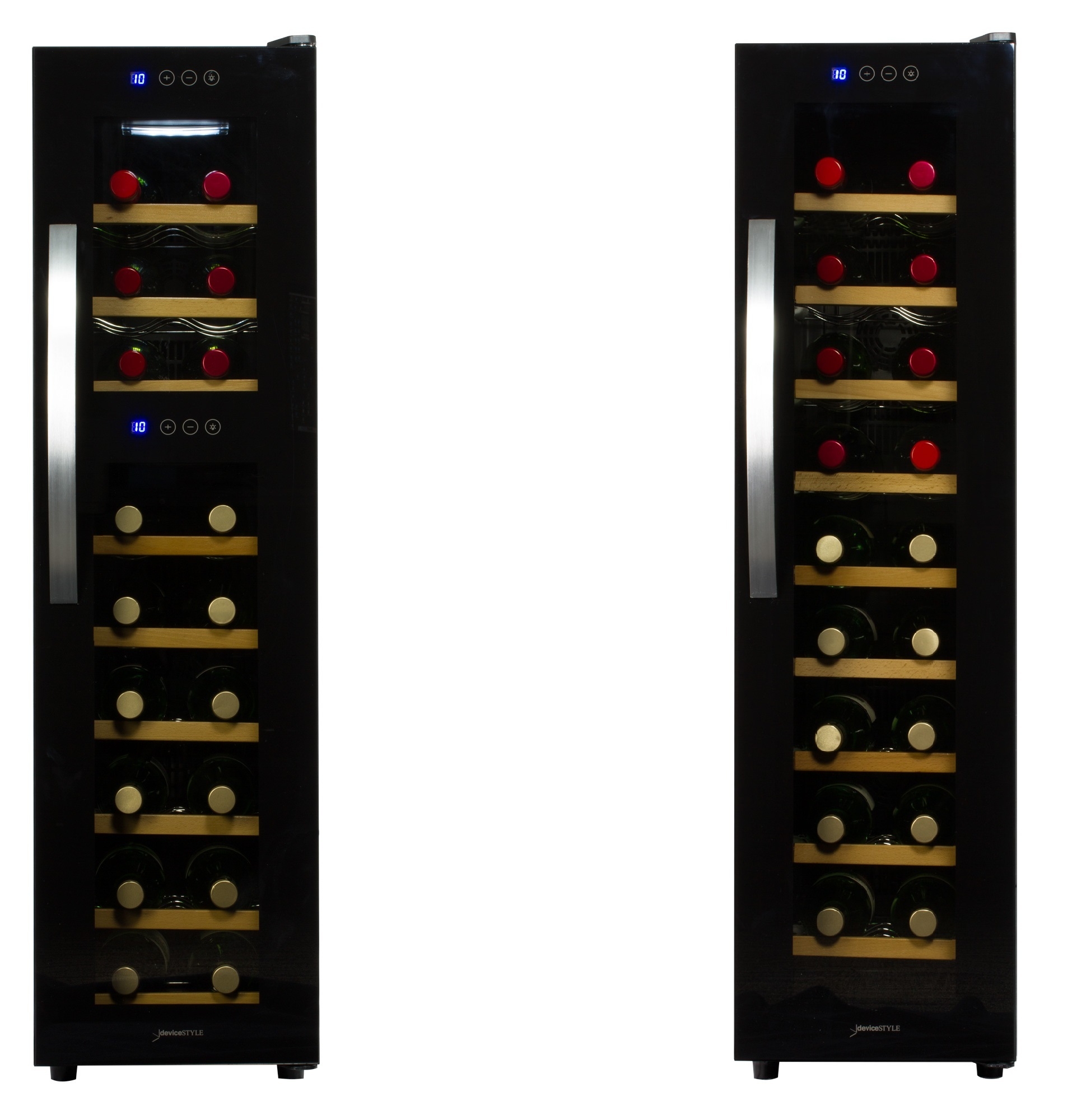 両モデルともに日本メーカー製の高信頼性ペルチェ素子を使用した冷却ユニットを2基搭載した18本用のワインセラーで、最大22本の収納が可能になっています。※ボルドータイプの場合。