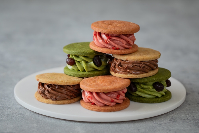 ショコラクリームには、カカオの酸味と濃いチョコレートを感じていただけるよう、カカオ72%のチョコレートを使用し、少し大人なお味となっております。ショコラクリームが口の中で溶けて、クッキーと一体となることで楽しめる、至福の生ショコラサンドをぜひご堪能ください。