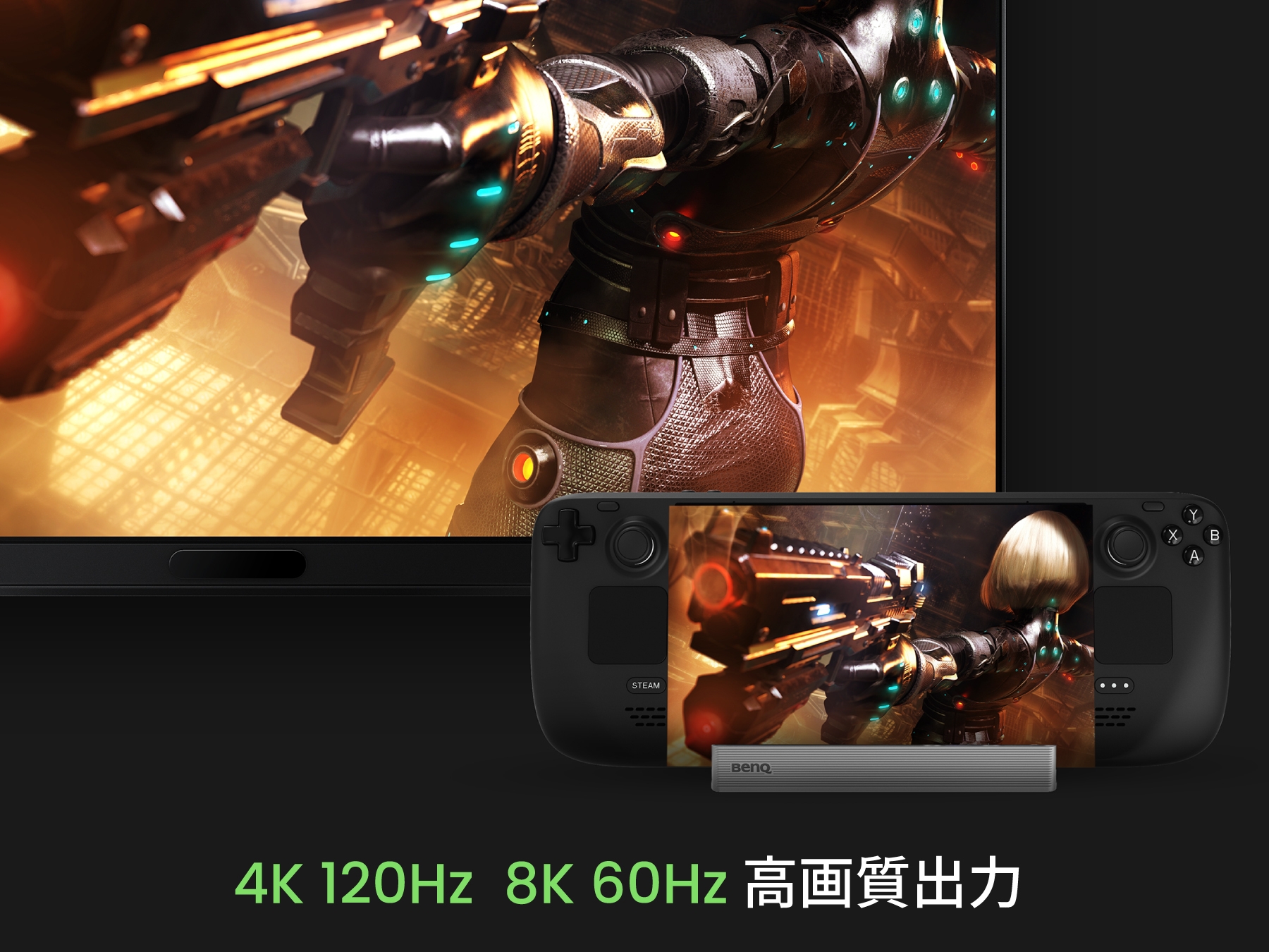 HDMI 2.1に対応し、4K 120Hz/8K 60Hzの高解像度、高リフレッシュレートの映像出力が可能です。映画の視聴や、ゲームプレイにおいても臨場感の溢れる映像体験を楽しむことができます。