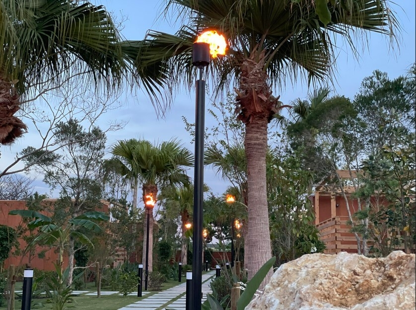 淡路島の自然と景観が南国ハワイのイメージと調和した、飲食店などの各種テナントやトレーラーハウスのグランピング施設が併設する「Awaji Lanikai Square(アワジ ラニカイ スクエア)」。宿泊施設の「グランピングトレーラー Lanikai」はヤシの木に囲まれ、南国感あふれる快適なトレーラーハウスで、人が集い、人を癒す、楽園のようなリゾート空間でゆったりとした時間をお過ごしいただけます。また、夕刻になると灯される迫力あるガス灯が、まるでハワイにいるかのような南国リゾート気分を一層演出してくれます。