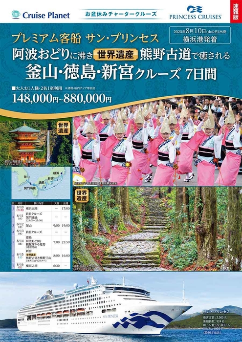 クルーズプラネット×H.I.S.  2020年夏「サン・プリンセス」チャータークルーズ発売  徳島「阿波おどり」と世界遺産 熊野の地へ | NEWSCAST