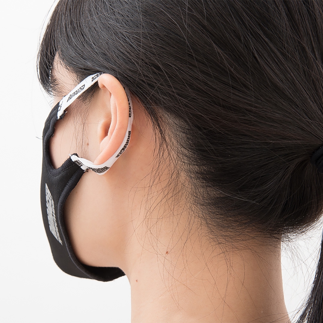 スポンジのように柔らかく肌触りの良い素材で、鼻や口を圧迫せず息苦しさが無い立体形状。顔の形に合わせて変形可能なノーズクリップ装備でフィット感に優れています。耳に優しいテープ状の耳ゴム仕様です。