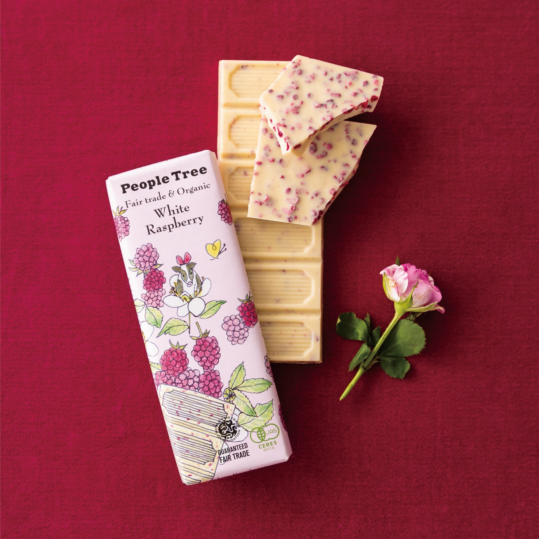 「フェアトレード&オーガニックチョコ オーガニック ホワイト・ラズベリー」