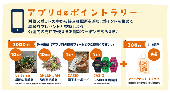 ※駒沢オリンピック公園管理所にて、「アプリdeポイントラリー」の駒沢ファンタジア画面をご提示ください。