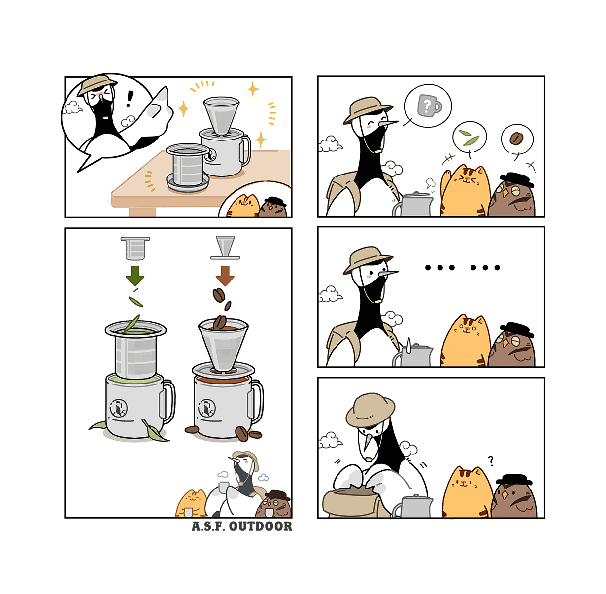 その際、二層マグカップはコーヒービーカーやポットに大変身!『茶琲 -CHAHI-』の1セットさえあれば、2人連れ、3人連れと人数が増えてもみんなで一緒に癒しの時間を過ごせます!