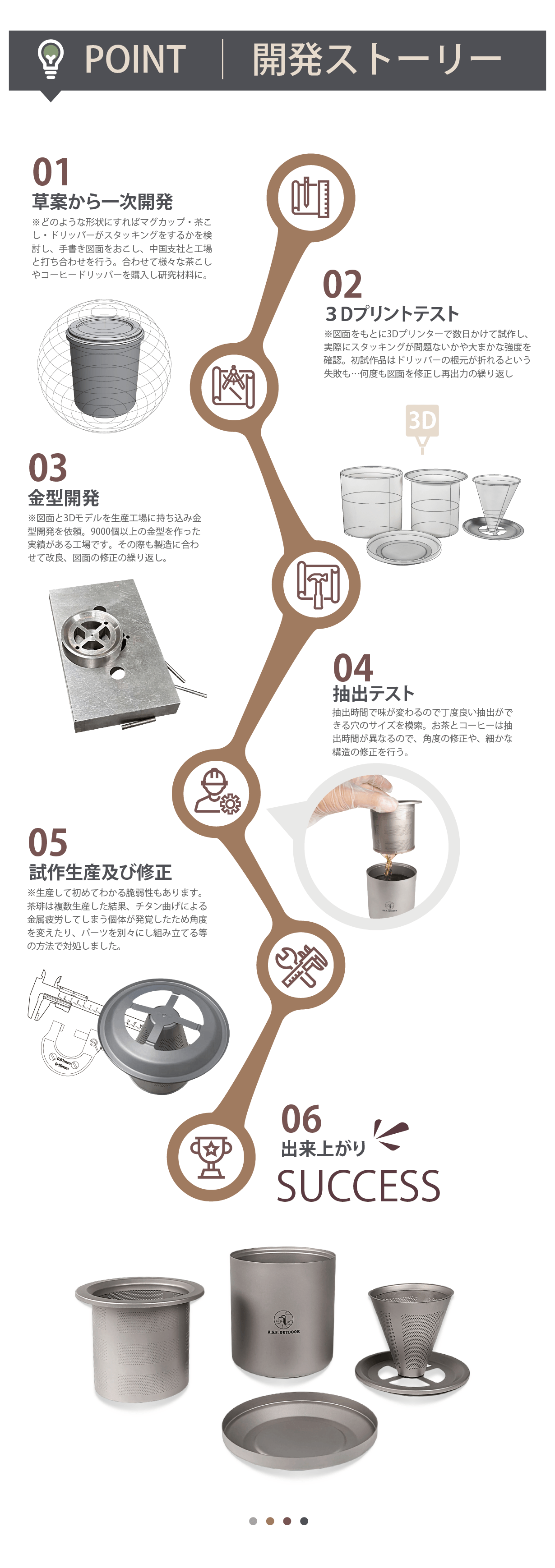 - 味に妥協なし!オリジナルのチタン製ドリッパーと茶こし