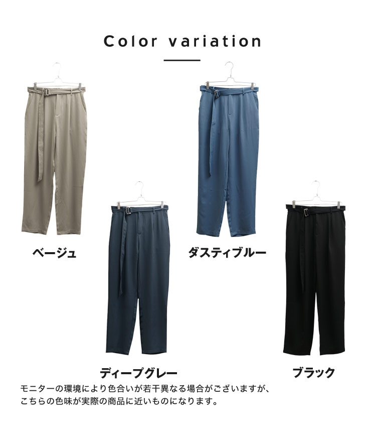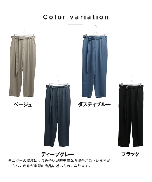 艶感のあるとろみ素材で、着こなしのアクセントになるベルトも付いています。