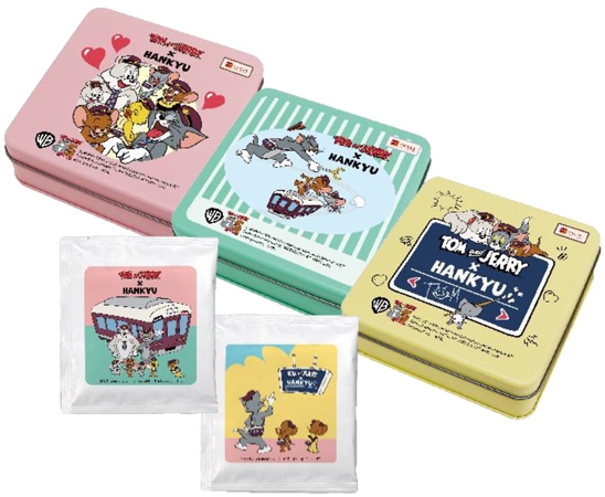 阪急電車に見立てた羊羹(ようかん)や、トムとジェリーたちが描かれたバターサンドクッキーなどのスイーツをご用意。