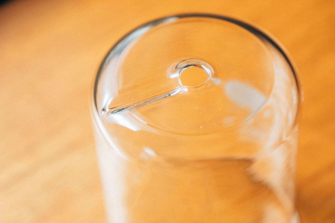 国内の熟練したガラス職人が、ビーカーの底面に特殊な火処理で穴を開けることで、