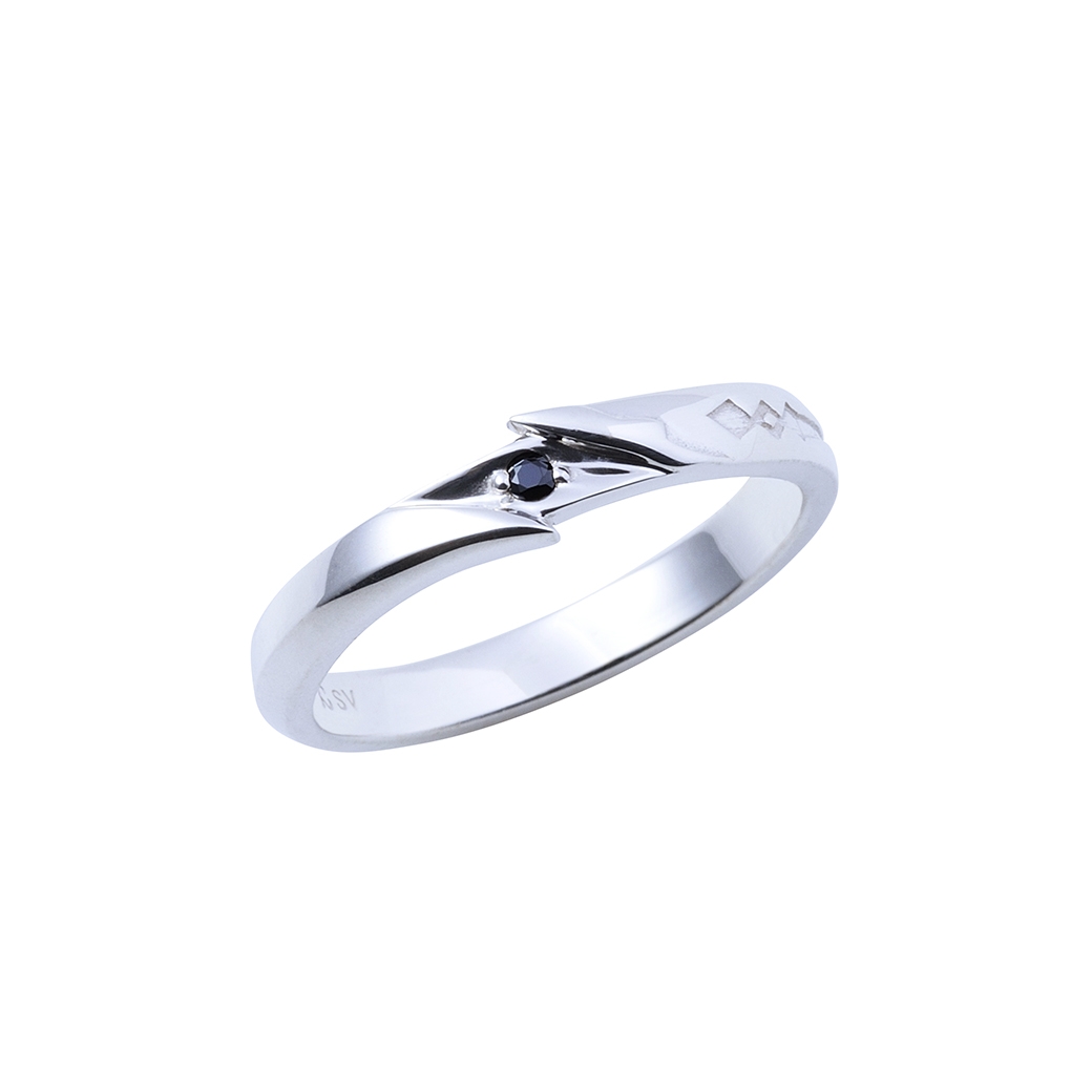 白の契約をモチーフとしたウェーブタイプのリングに、ブラックのストーンをセット。