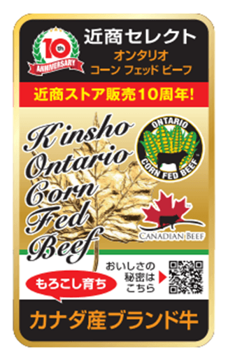 オンタリオコーンフェッドビーフはカナダのオンタリオ州産ブランドビーフです。10周年特別アイキャッチシールなどでお客様にPRを行います。