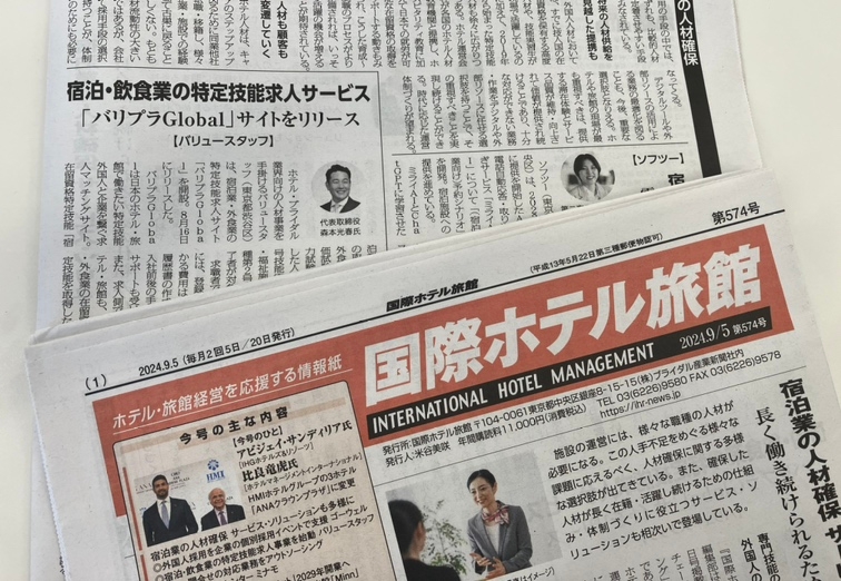 宿泊業界ための経営情報紙『国際ホテル旅館』9/5号に、バリプラGlobalの記事が掲載されましたのでお知らせいたします。代表取締役の森本が、宿泊・飲食業の特定技能求人サイト「バリプラGlobal」のリリースに向けた想いなどをお話させていただいております。ぜひご一読ください。