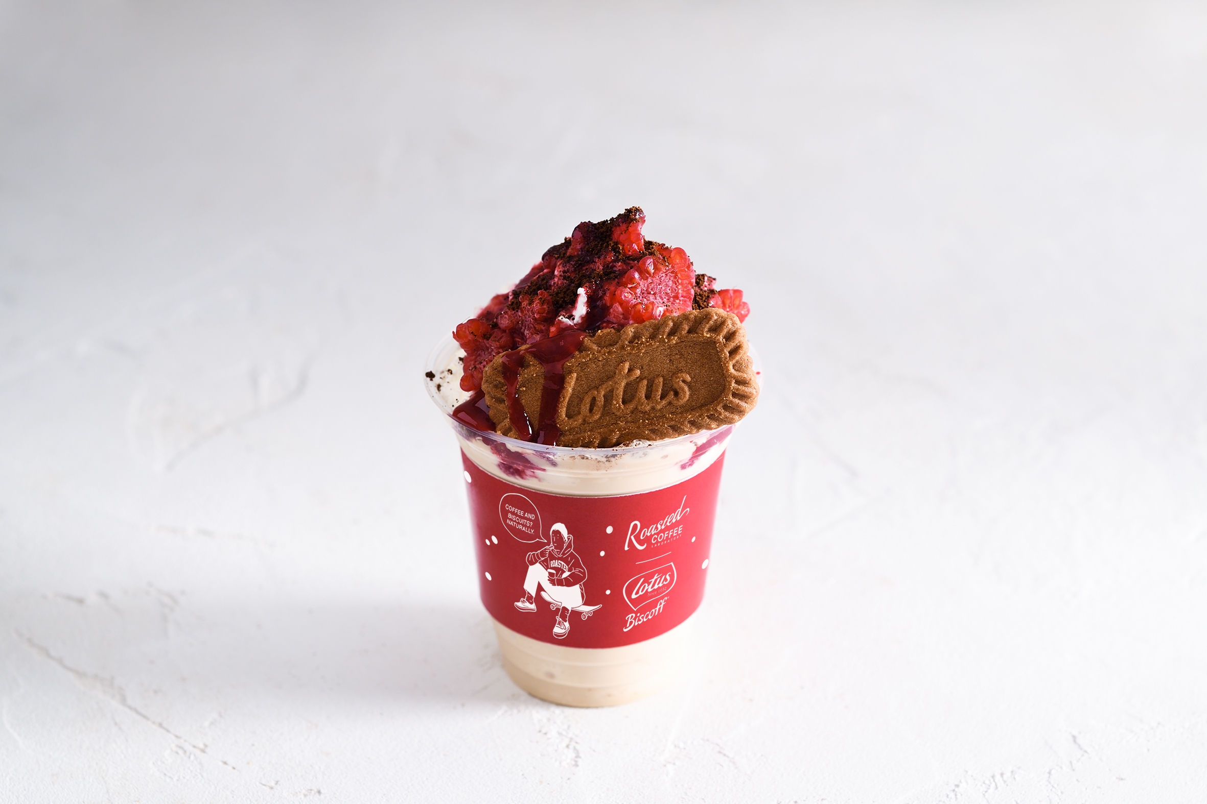 トッピングだけでなく、シェイクの中にロータス ビスケットスプレッドのシロップを忍ばせ、かき混ぜるごとに、コーヒーとロータス ビスコフの風味のマリアージュを楽しめます。
