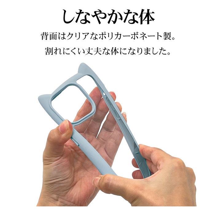 かわいい猫耳が付いたハイブリッド背面ケースです。