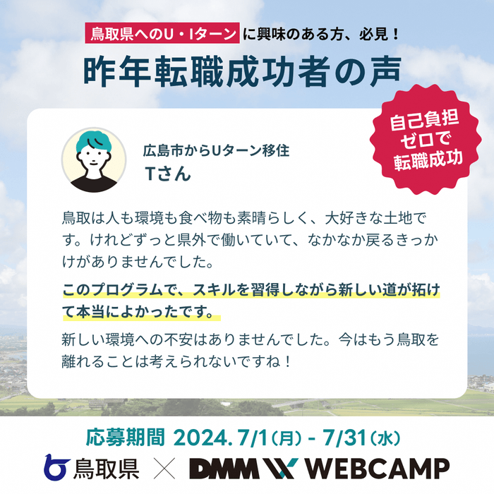 【DMM WEB CAMP×鳥取県】とっとりデジタル人材育成プログラムの受講者募集を開始しています