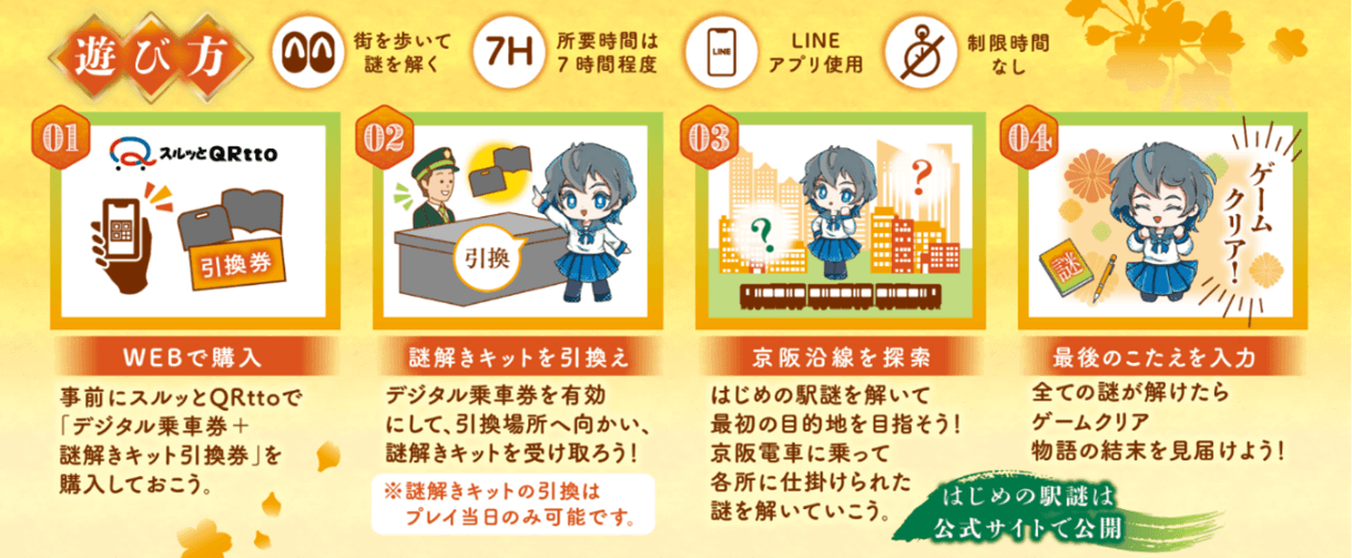 ※プレイ当日にデジタル乗車券を有効にして、謎解きキット引換場所へお越しください。
