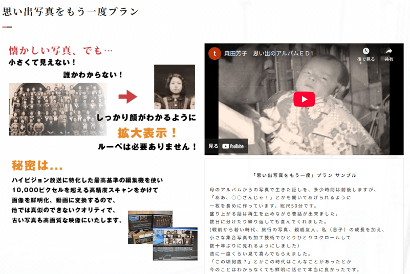 「思い出放送局」は、利用者一人ひとりの思い出や願いに寄り添うことを最優先に設計された映像制作・配信サービスです。主な特徴は以下の通りです。