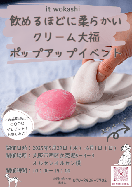 『It Wokashi 梅田店』はアパホテル&リゾート 大阪梅田駅タワー(大阪市北区曽根崎2-8-32)の一階にて店舗出店しております。万博の勢いそのままにインバウンドのお客様を多く迎え入れ、「ジャパニーズ モチ」と外国の方が賑わいを見せています。店舗では、ふわふわかき氷と飲める程に柔らかい大福の奇跡のコラボレーション商品を販売しており、外国の方には初めてのふわとろ食感で大変人気です。