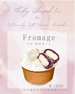 商品名 : 「ふわふわかき氷on飲めるほどに柔らかいクリーム大福」