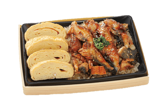 店内で焼き上げただし巻き玉子とうなぎを盛り付けたちょっと欲張りなお弁当。